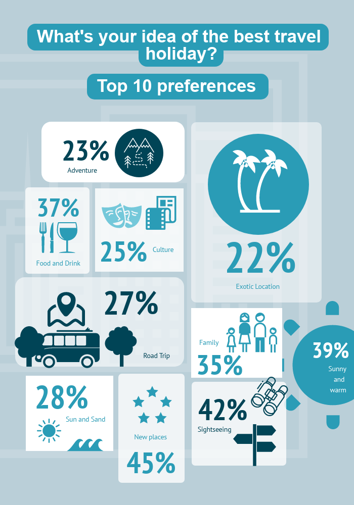 We wanted to find out more about the travel habits of Australians, so we asked 3,000 people about their preferences as part of Perpetual’s How do you feel? research study. Our findings show the best vacations involve: