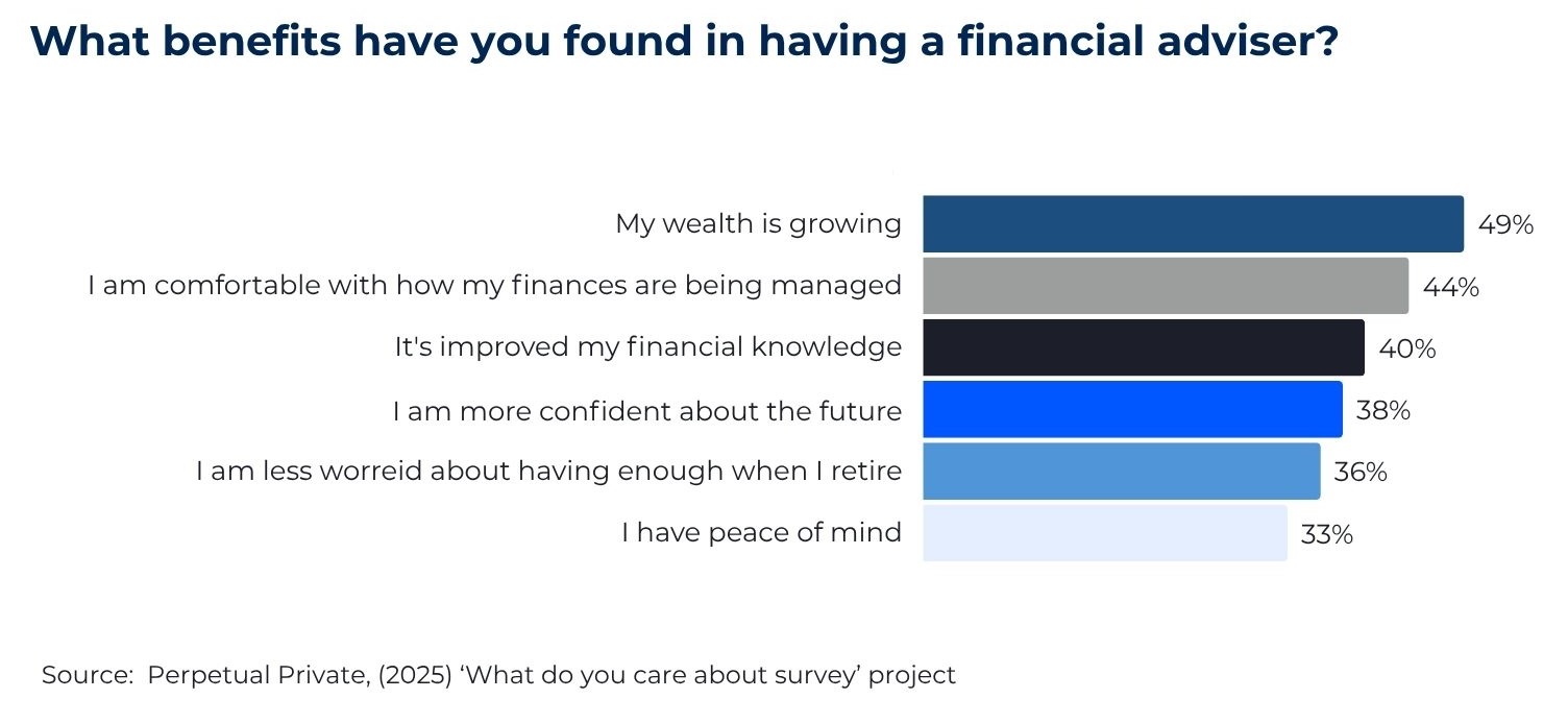 Insights based on Perpetual’s 2024 ‘What do you care about?’ survey of 3000 Australians, we looked at Australian women who partner with a financial adviser what benefits they have gained from their relationship, and there were many.