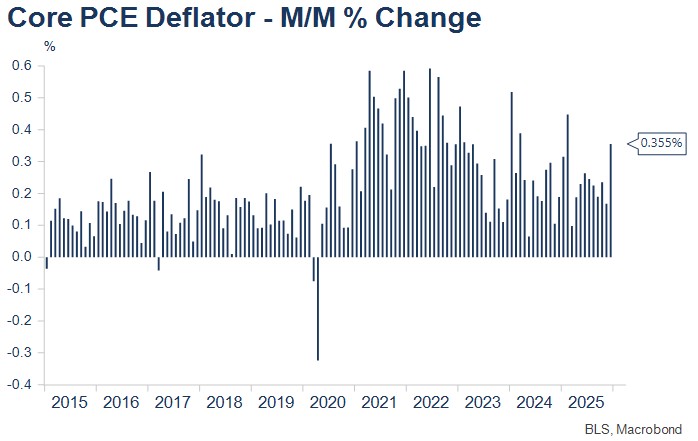 • US core PCE inflation was a stronger than expected 0.36% m/m in January, the largest increase since February last year. PCE inflation needs to average around 0.165% a month to annualise at the Fed’s 2% inflation target.